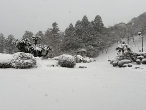 本日は朝から雪が降り続き、恒陽台も雪が積もりました。